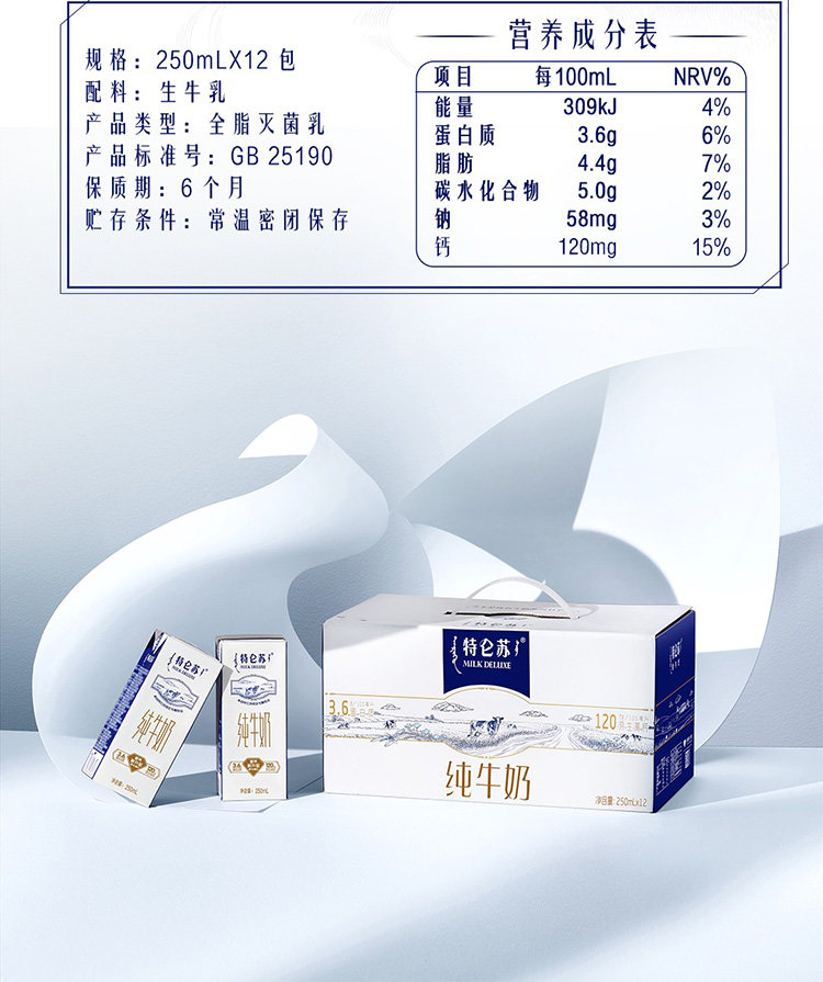 特仑苏纯牛奶250ml*12包整箱