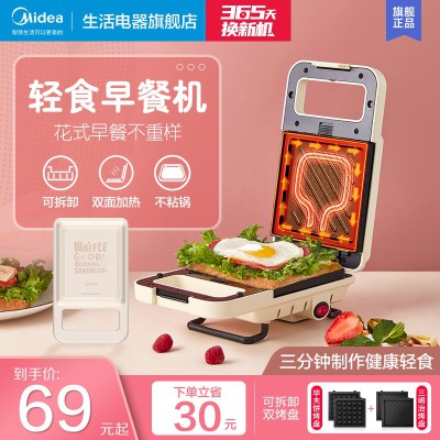 美的三明治早餐机家用小型多功能华夫饼机吐司三文治神器烤面包机