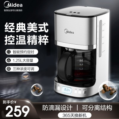 美的美式咖啡机家用小型全自动一体机办公室一人用滴漏式饮料机