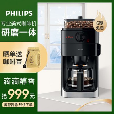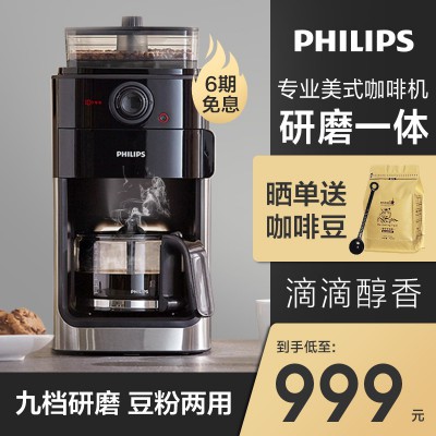 飞利浦美式咖啡机家用研磨一体全自动小型办公室现磨半自动泡茶机